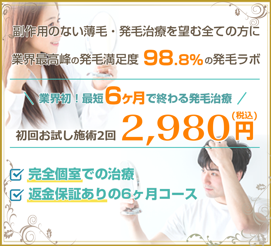 大手発毛・薄毛・育毛・AGAサロンの治療内容と同じ施術方法・技術ですが、おおよそ30%~40%程お安く金額が提示できるお客様が多いかと思います。